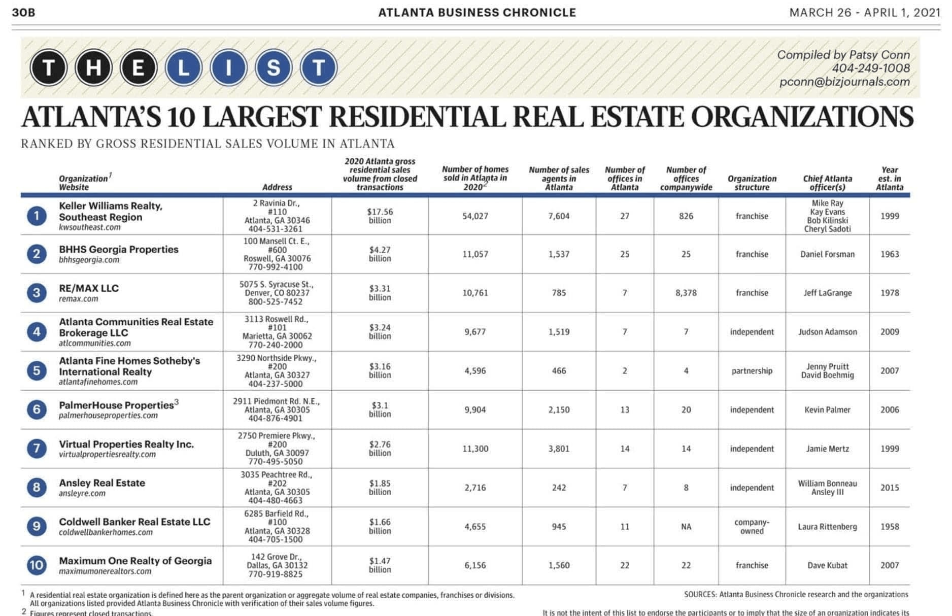 Keller Williams is the largest real estate franchise in the world - home to more real estate professionals than any other company. This vast network provides a global network for agents and their clients. Our leader, Gary Keller, is frequently voted among the most influential people in real estate. We outpace our competitors at an astonishing rate in the Atlanta area as noted in this chart below. KW Agents sold more real estate than our next 5 competitors combined. Enough said - our reach is local, domestic and international like no other company.